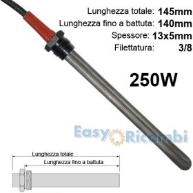 Resistenza candeletta di accensione per stufe a pellet. Ricambio adatto per stufe, caldaie e bruciatori. CARATTERISTICHE:RACCORDO DA 3/8, DIAMETRO 12,5mm, LUNGHEZZA 19cm, LUNGA FINO A BATTUTA 18cm, 350Watt. HT62666 – 14701011